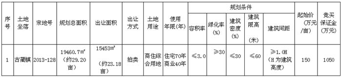 古藺縣國有建設(shè)用地使用權(quán)拍賣出讓公告